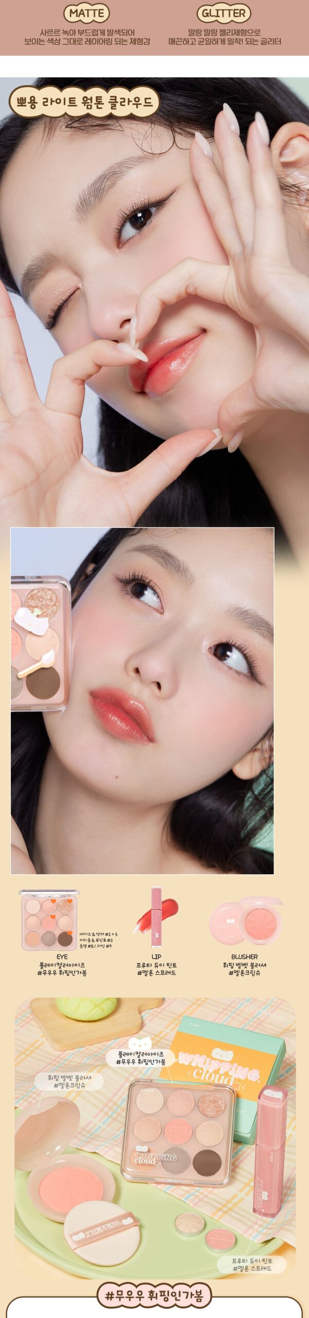 Embrace the charm of the Whipping Cloud Play Color Eyes Palette by Etude, perfect for anyone looking to add a touch of whimsy to their makeup collection. Whether it’s a soft, everyday look or a bold, glittery eye, this palette has everything you need to bring your vision to life.