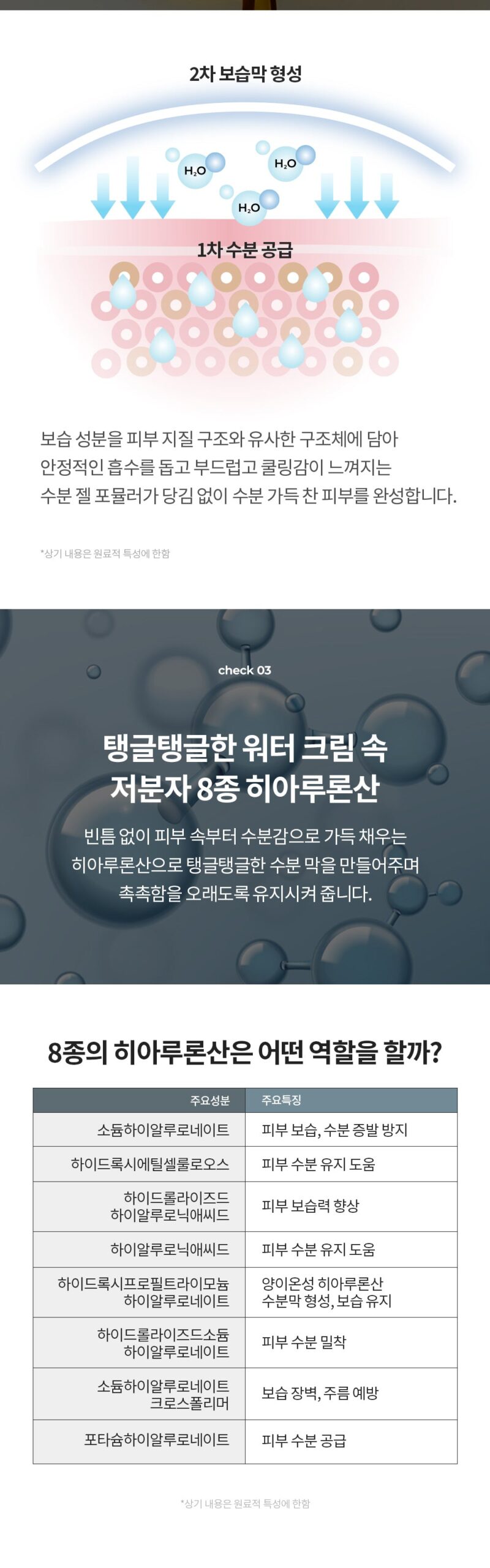 – 8 types of low-molecular-weight hyaluronic acid contained in chewy water cream