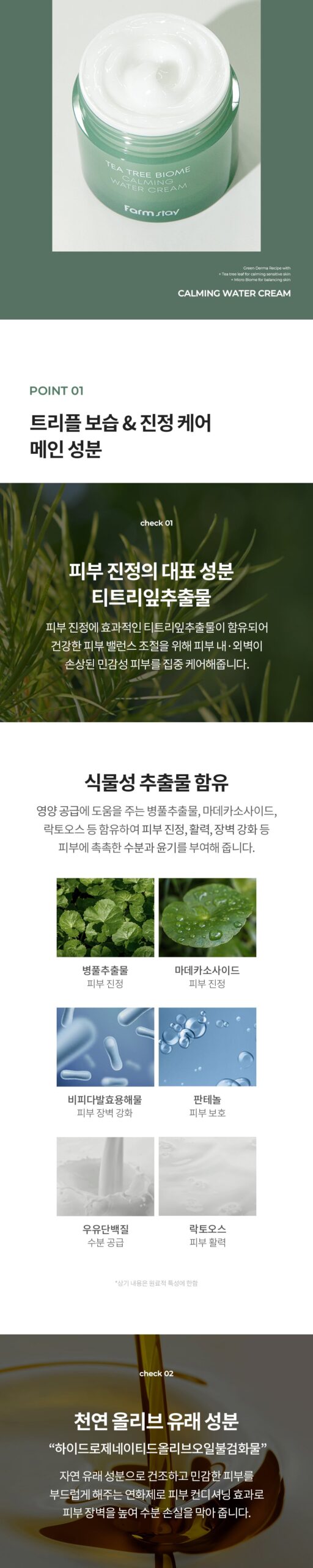 Triple moisturizing effect with tea tree + olive-derived ingredients + 8 types of hyaluronic acid!