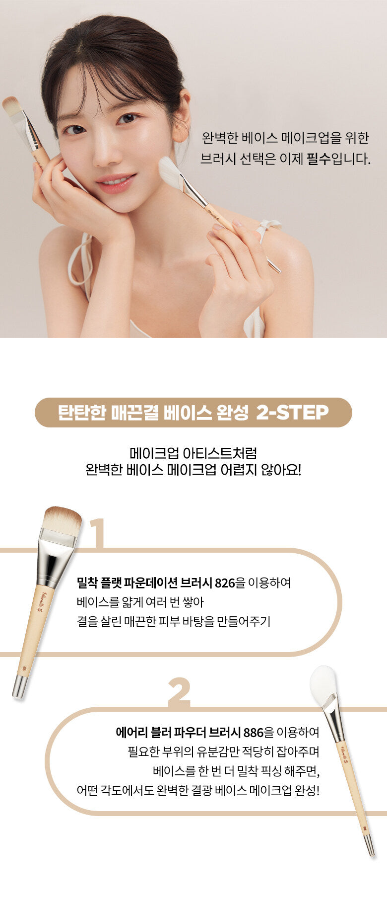 Using the adhesion flat foundation brush 826, layer the base thinly several times to create a smooth skin base with texture.