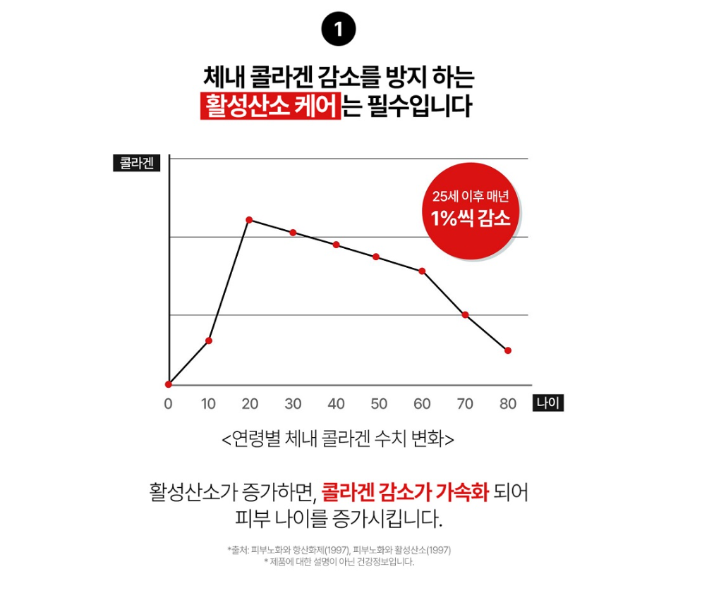 🔸 Excess active oxygen speeds up collagen loss, accelerating skin aging.