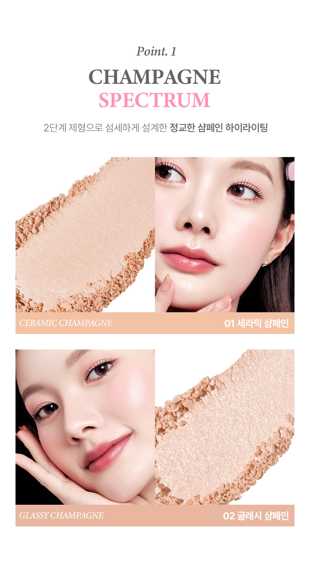 Achieve a refined champagne glow with a meticulously designed two-step formulation. This blend enhances your complexion with a soft, shimmering effect, creating a radiant and dimensional finish.
