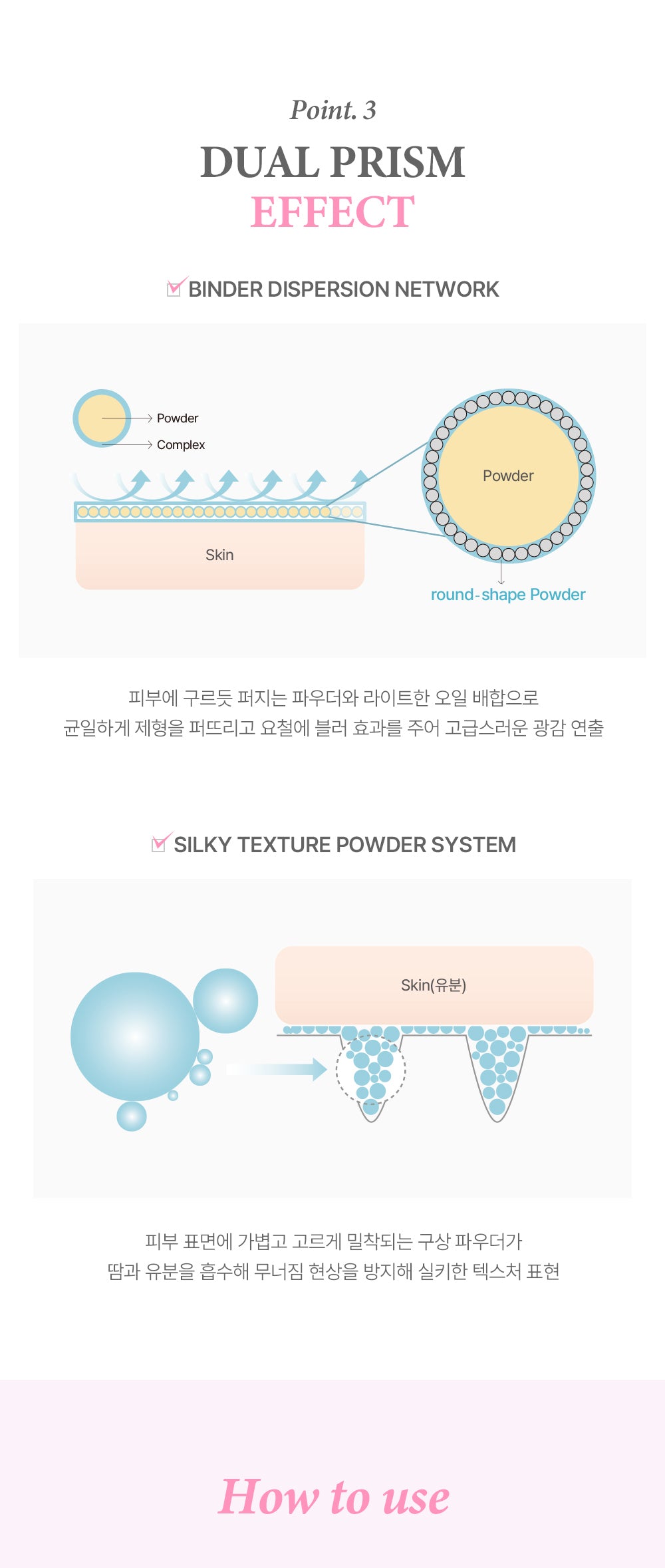 A spherical powder adheres lightly to the skin, preventing breakdown caused by sweat and oil. The result is a smooth, silky texture that stays intact throughout the day, keeping your skin looking fresh and luminous.