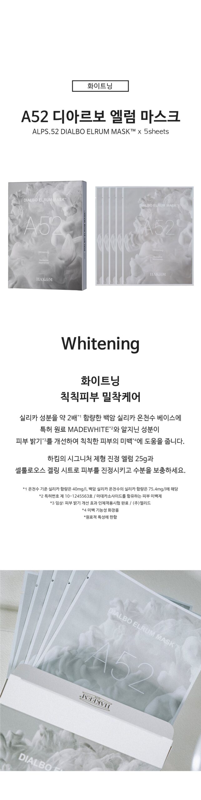 After using the HAKeeM A52 Dialbo Elrum Mask, I was pleasantly surprised by its effectiveness. The MadeWhite™ ingredient derived from Centella Asiatica noticeably reduced some dark spots on my skin and contributed to an overall brighter complexion. The infusion of silica spa water felt refreshing, and it left my face feeling hydrated without any greasy residue. After just one application, I could see a more revitalized look to my tired skin, making it perfect for special occasions or whenever I need a quick pick-me-up.