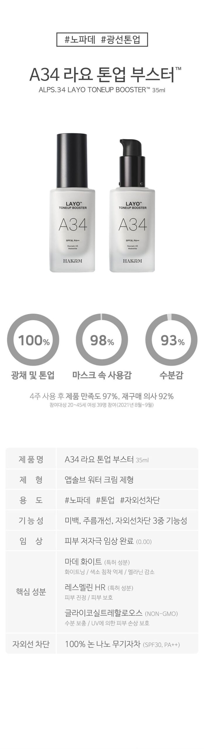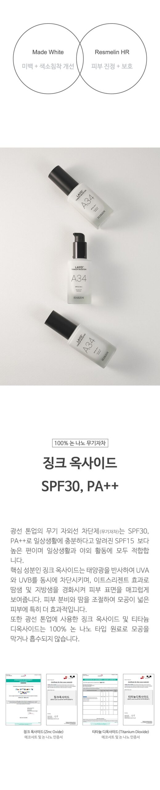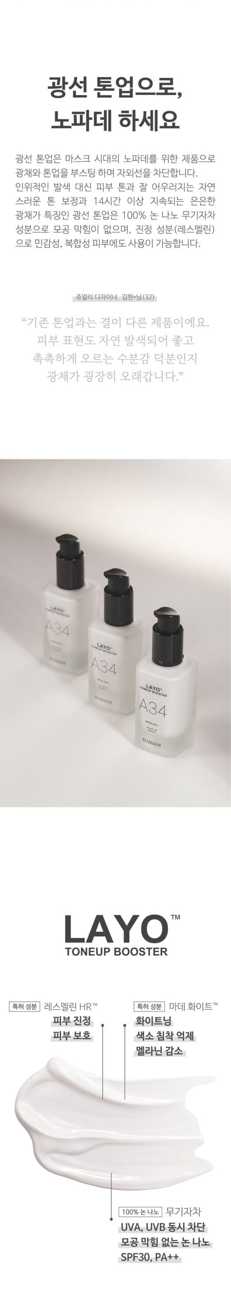 HAKeeM Layo Tone Up Booster A34 has genuinely transformed my daily skincare routine. With its triple functionality of whitening, wrinkle improvement, and UV protection, I felt confident going makeup-free. The non-nano physical sunblock provides SPF30 PA++ protection without clogging my pores; even after hours in the sun, my skin looked radiant. Plus, it’s hypoallergenic—no irritation whatsoever on my sensitive skin! It blends perfectly with my natural tone and leaves a soft finish that lasts throughout the day.