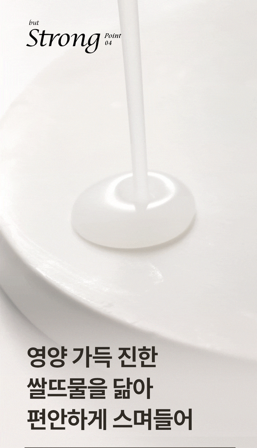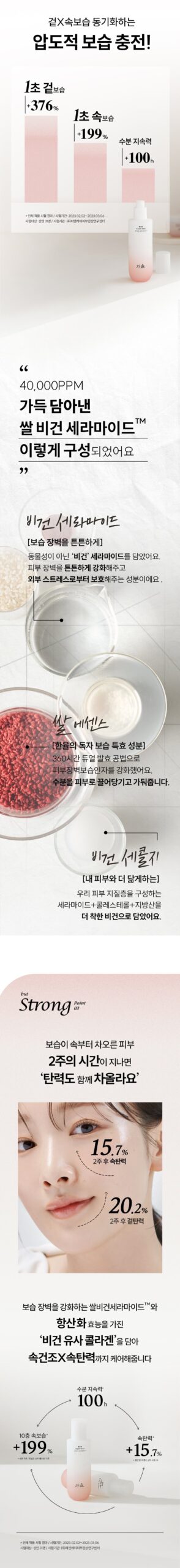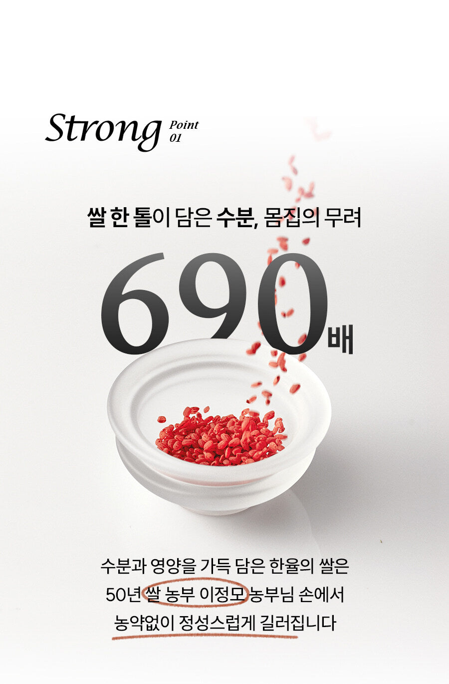 Made with ultra-light glass container, metal-free pump, vegan-certified 8-free formula and rice cultivated in Yeoju.