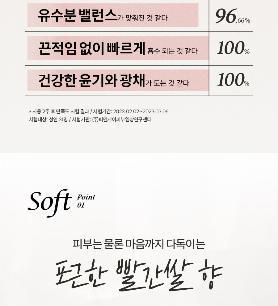 Contains nourishing rice water for comfortable absorption. 96% satisfaction in water-oil balance and 100% satisfaction in quick absorption without any stickiness and healthy glow and radiance.