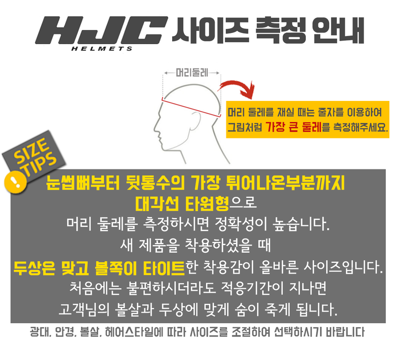 - For full-face helmets, choose one size larger than an open-face helmet.