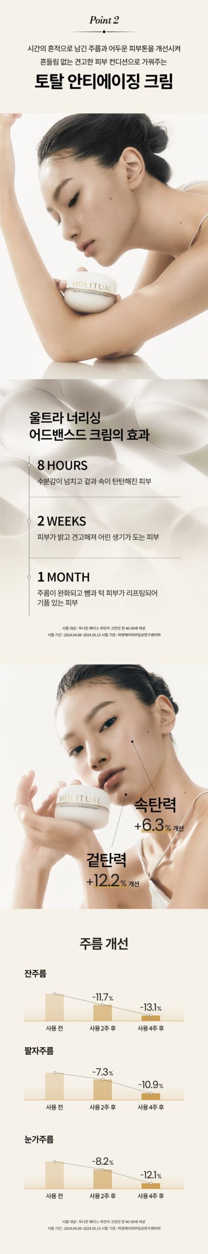 - 8 Hours: Immediate hydration with improved inner and outer elasticity.