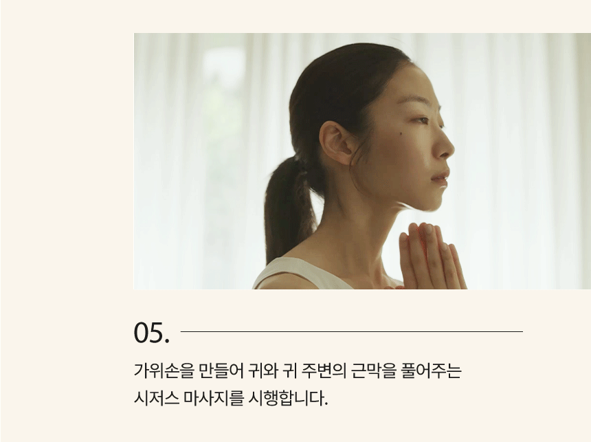 - Perform a “scissors massage” to relieve tension around the ears and jawline.