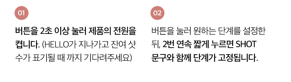 - To change settings during care, press the button twice quickly to enter SET mode, select the new level, then press twice again to return to SHOT mode.
