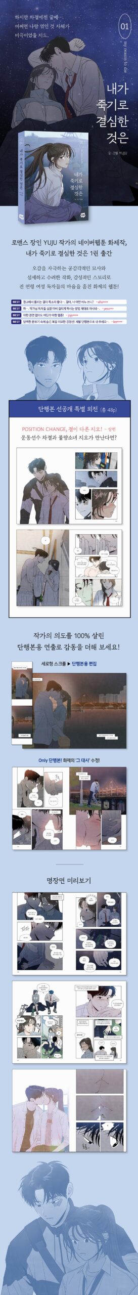 『What I Decided to Die』 is the latest creation from YUJU, a celebrated author on Naver Webtoon known for captivating a wide audience with his detailed sensory descriptions, exquisite artwork, and engaging narratives. This series showcases YUJU’s unique directorial approach by utilizing an open-page format instead of the traditional vertical scroll, enhancing the immersion and allowing the full intent and direction of the author to shine through.