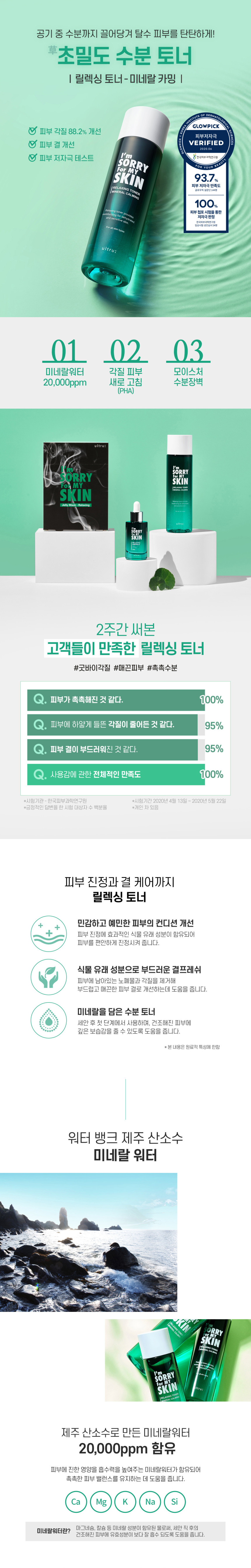 Discover the secret to a calm, hydrated, and radiant complexion with the I’m Sorry For My Skin Relaxing Toner. This exceptional toner is your daily dose of soothing hydration, meticulously crafted to prepare your skin for its best performance. Infused with the purest Jeju mineral water and potent botanical extracts, it’s designed to deliver instant absorption and lasting comfort, making it an essential step in every skincare routine.