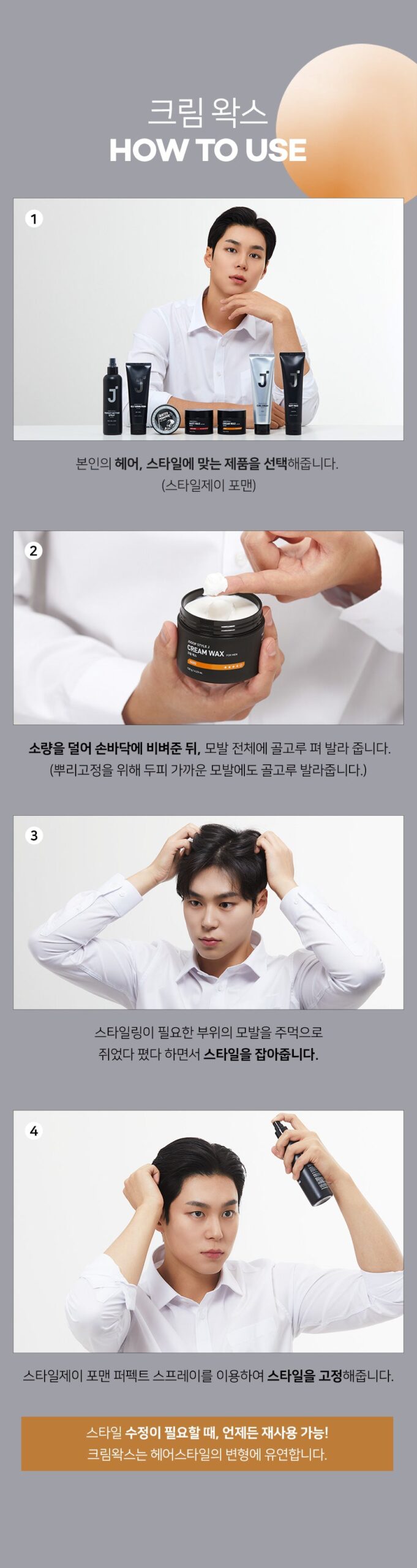 - For enhanced hold, use Style J For Men Perfect Spray to lock in your style.
