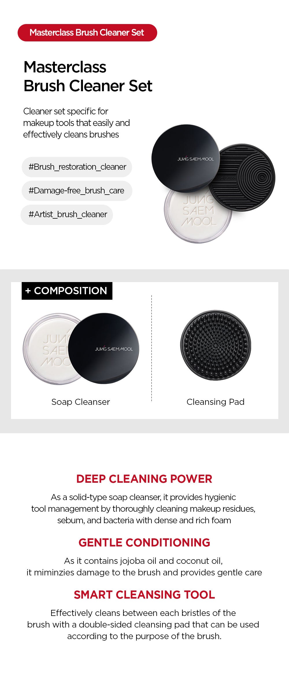 I was really impressed with the JUNGSAEMMOOL Masterclass Brush Cleaner Set. The solid-type soap cleanser created a dense foam that lifted off makeup residues and dirt from my brushes effectively. The added jojoba and coconut oils kept my bristles soft, preventing any damage during cleaning. I particularly loved the double-sided cleansing pad—it made it so easy to clean between each bristle! After using it, my brushes felt rejuvenated and were as good as new. Definitely recommend this set for anyone serious about brush maintenance.