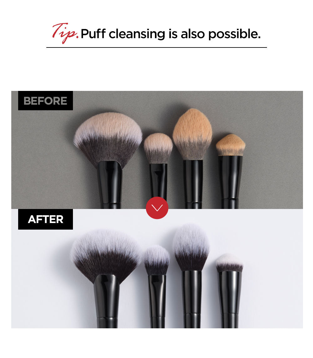 Solid-Type Soap Cleanser: This cleaner set, featuring a solid-type soap, is expertly designed for makeup tools. It ensures thorough cleaning by removing makeup residues, sebum, and bacteria with its dense, rich foam. This process promotes hygienic tool management, essential for maintaining the quality and longevity of your brushes.
