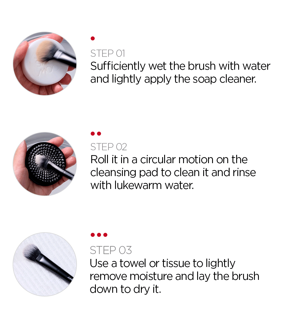 - Step 02: Clean the brush by rolling it in circular motions on the cleansing pad. After thoroughly cleaning, rinse the brush with lukewarm water.