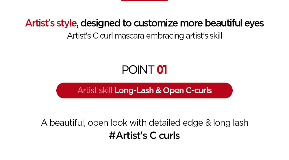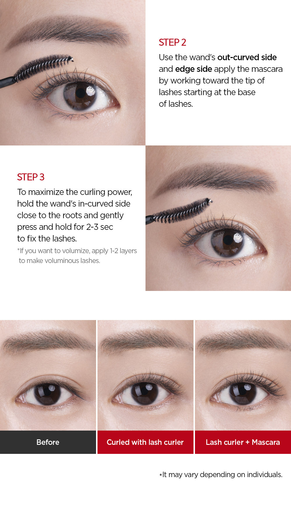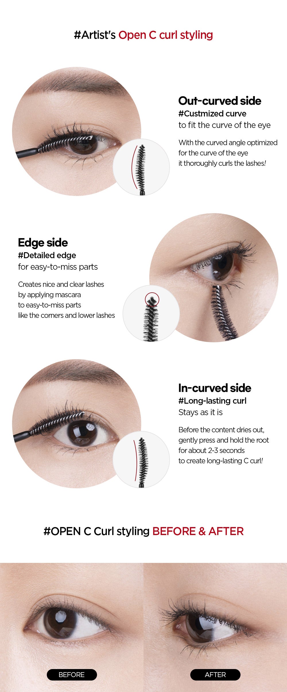 - Artist’s C curls: Achieve an open and beautiful look with our unique technique. Hold the wand against your lash line, curling lashes at the root for an impactful, artistically crafted appearance.