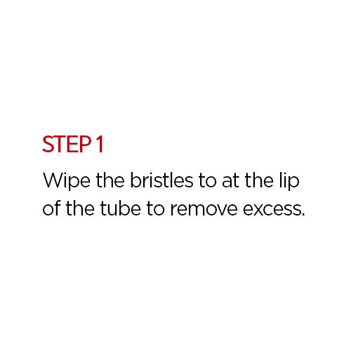 - Preparation: Wipe the bristles at the lip of the tube to remove excess product.