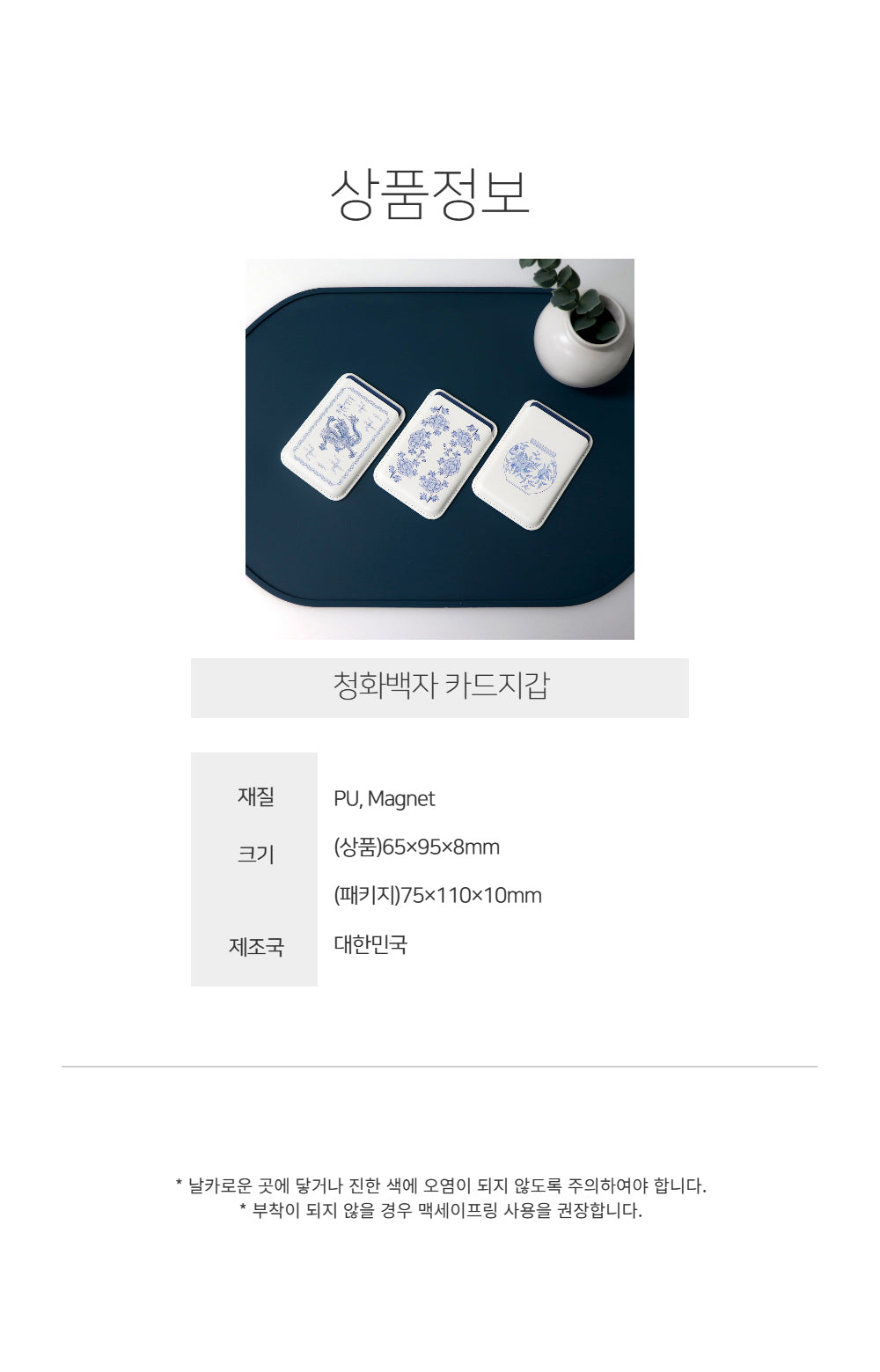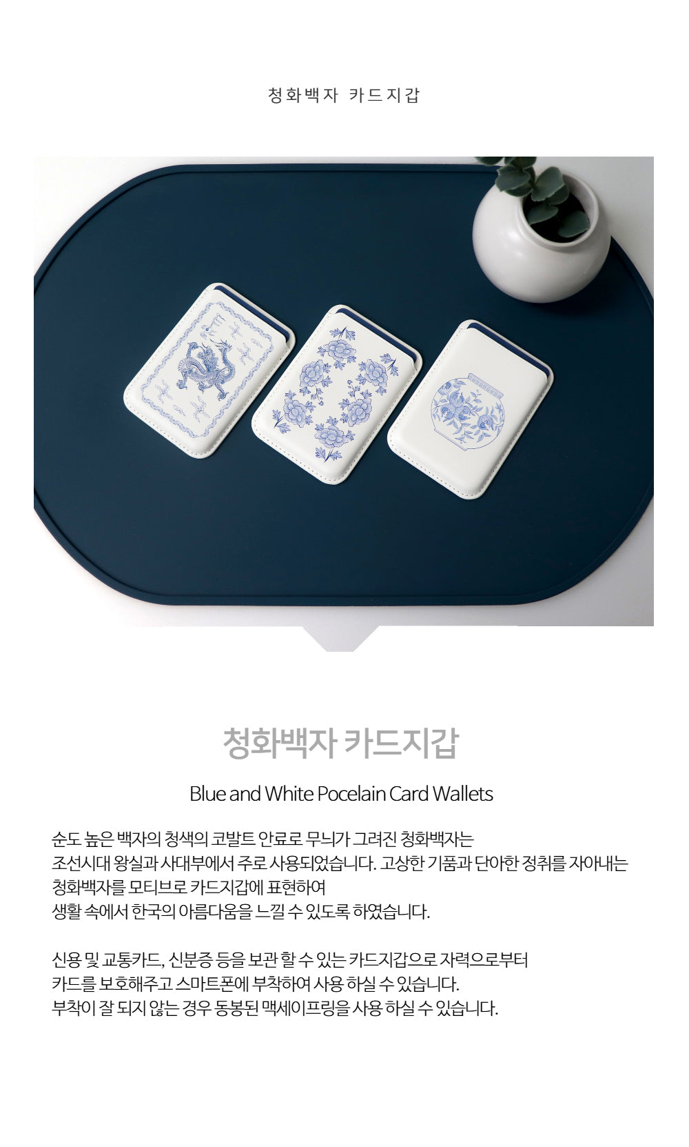 Bring timeless elegance into your everyday life with this beautifully crafted card wallet, inspired by the high-purity white porcelain and cobalt blue patterns once favored by the royalty and nobility of the Joseon Dynasty. Featuring a traditional blue-and-white porcelain motif, this wallet blends classical Korean aesthetics with modern convenience.
