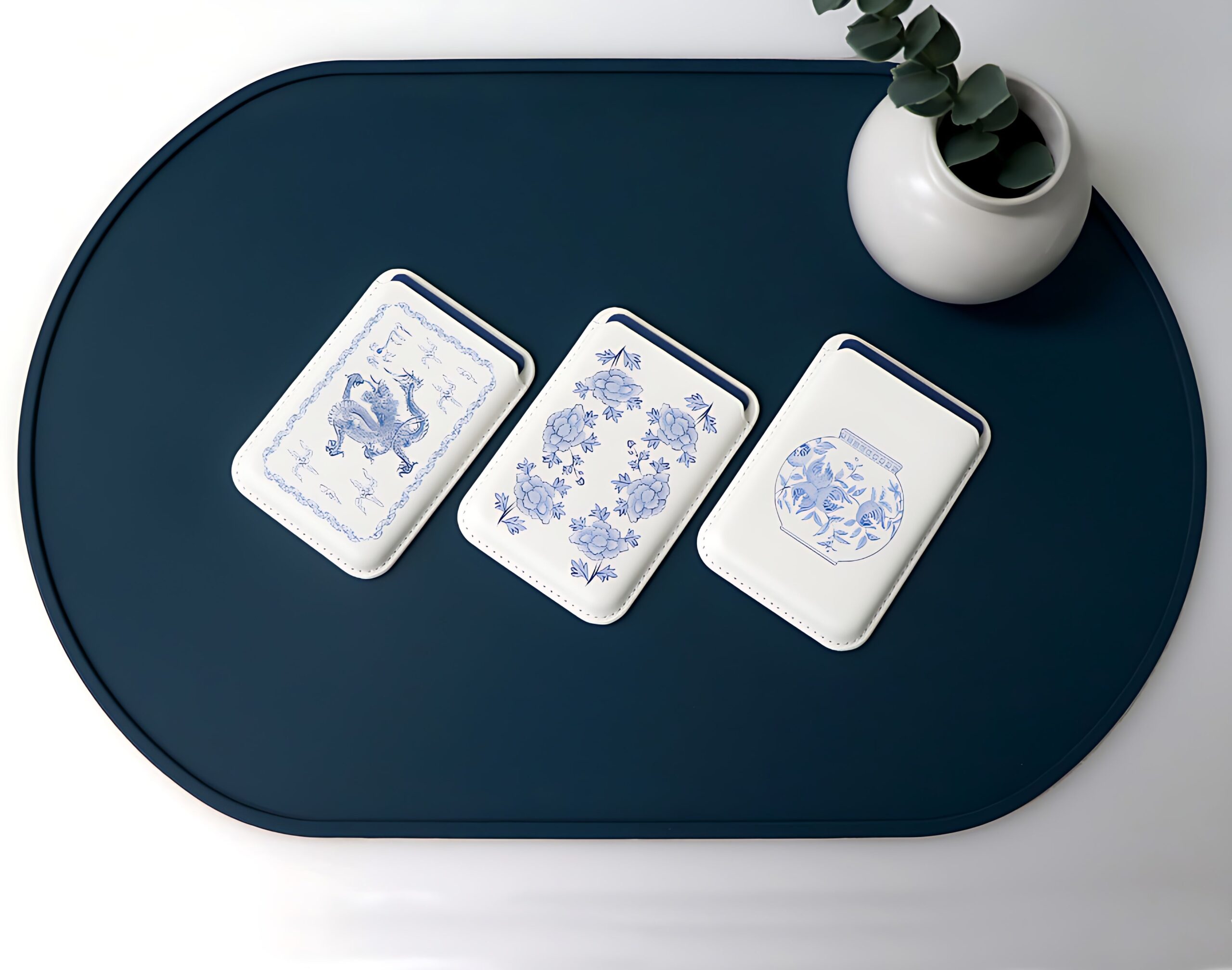 Elegant Blue-and-White Porcelain Pattern Card Wallet – Inspired by Joseon Dynasty Royal Heritage