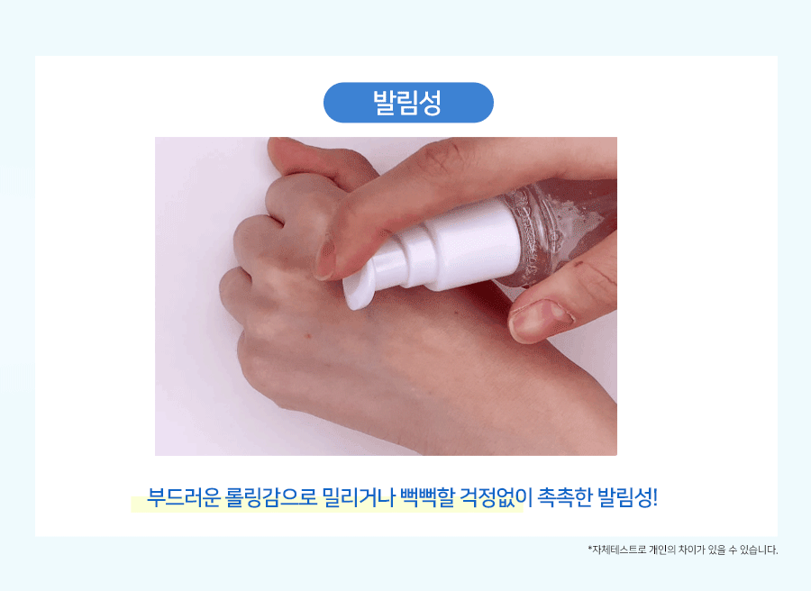 Absorption – Absorbed by gently tapping without leaving any residue on the skin!