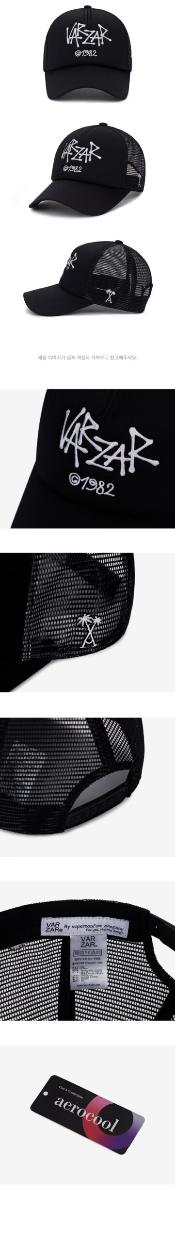 The VARZAR pentagonal mesh cap features a logo with a beach motif. This is a VARZAR pentagonal mesh cap with a logo embodying freedom and freshness.