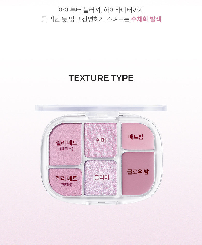 The Wakemake Soft Sheer Multi Palette features an innovative blend of textures, from Jelly Matte to Glow Balm, offering a first-of-its-kind multi-palette. Achieve a watercolor-like finish with translucent and vibrant pigmentation that effortlessly enhances your eyes, blush, and highlighter.