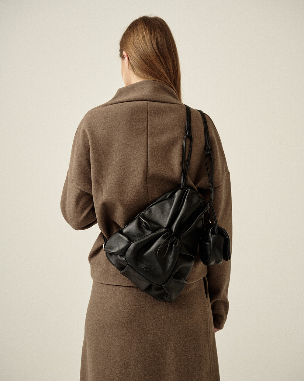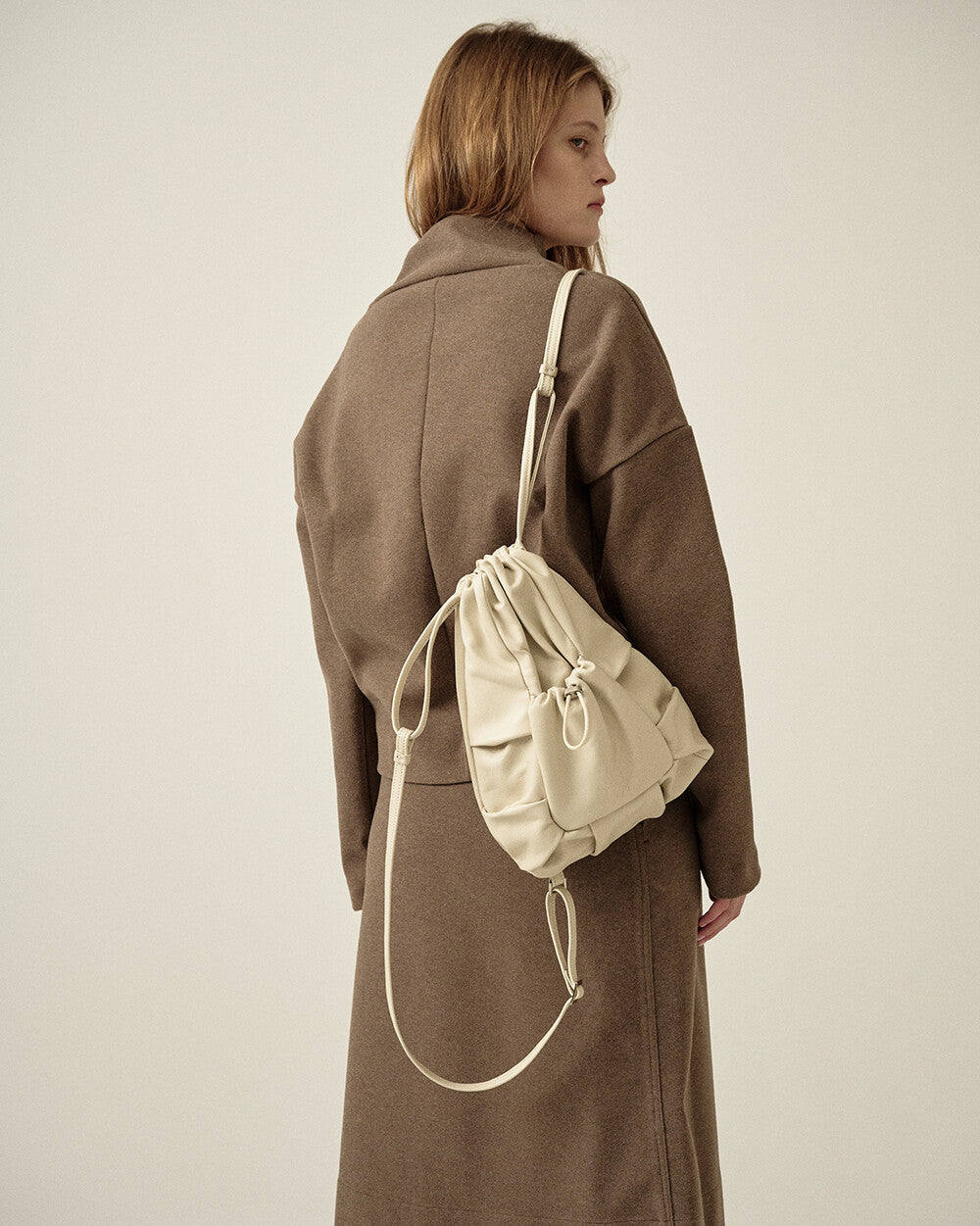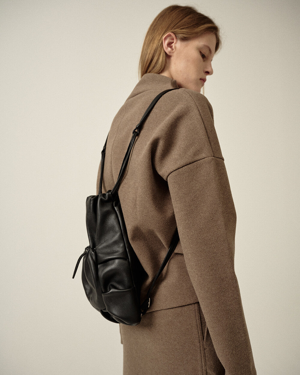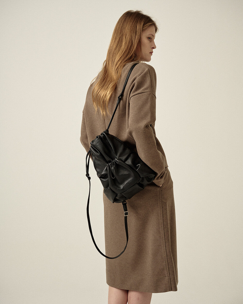 By minimizing excessive details, this backpack highlights the soft volume and fluid silhouette of high-quality leather. The simple yet sophisticated design makes it a versatile accessory that complements any outfit.