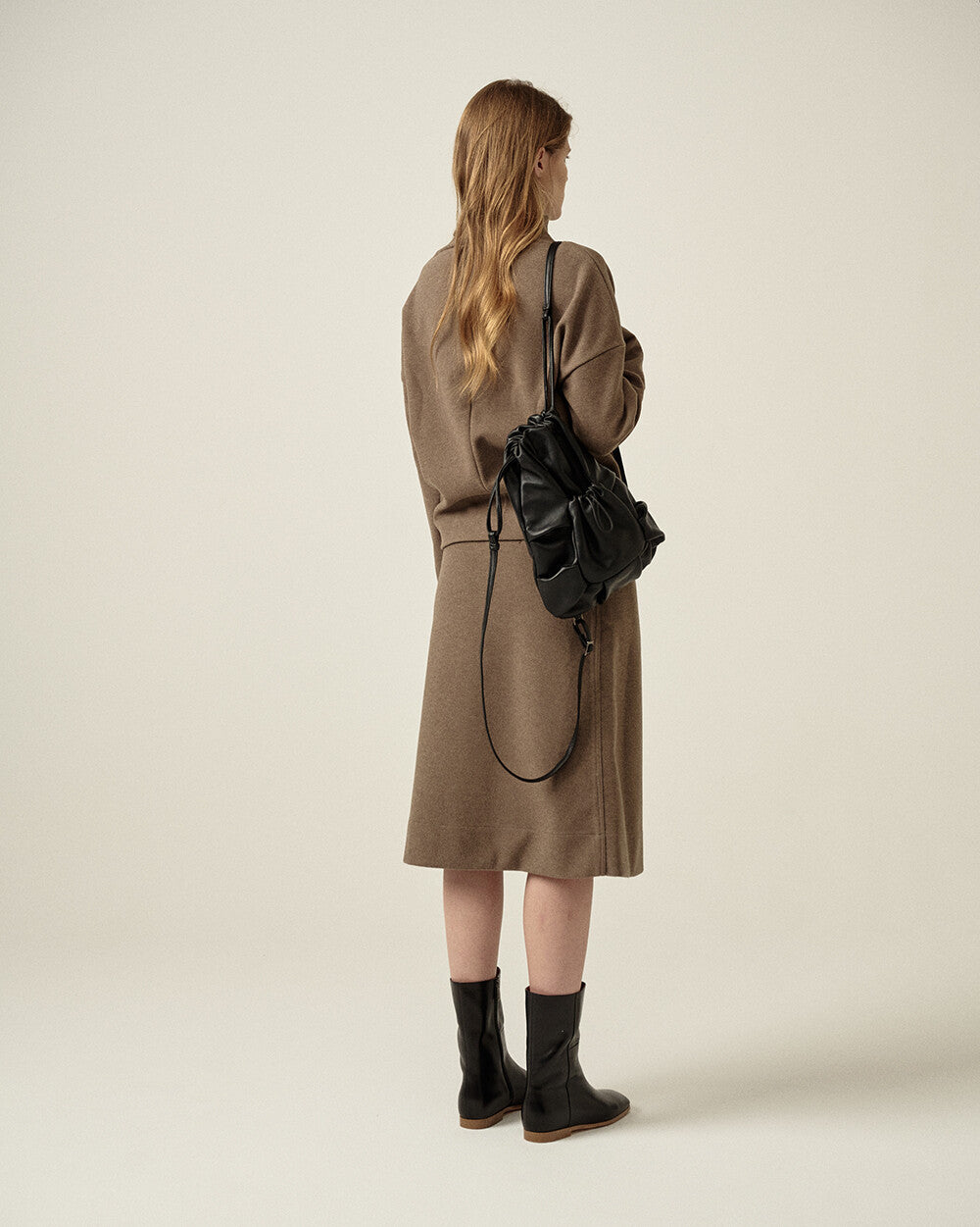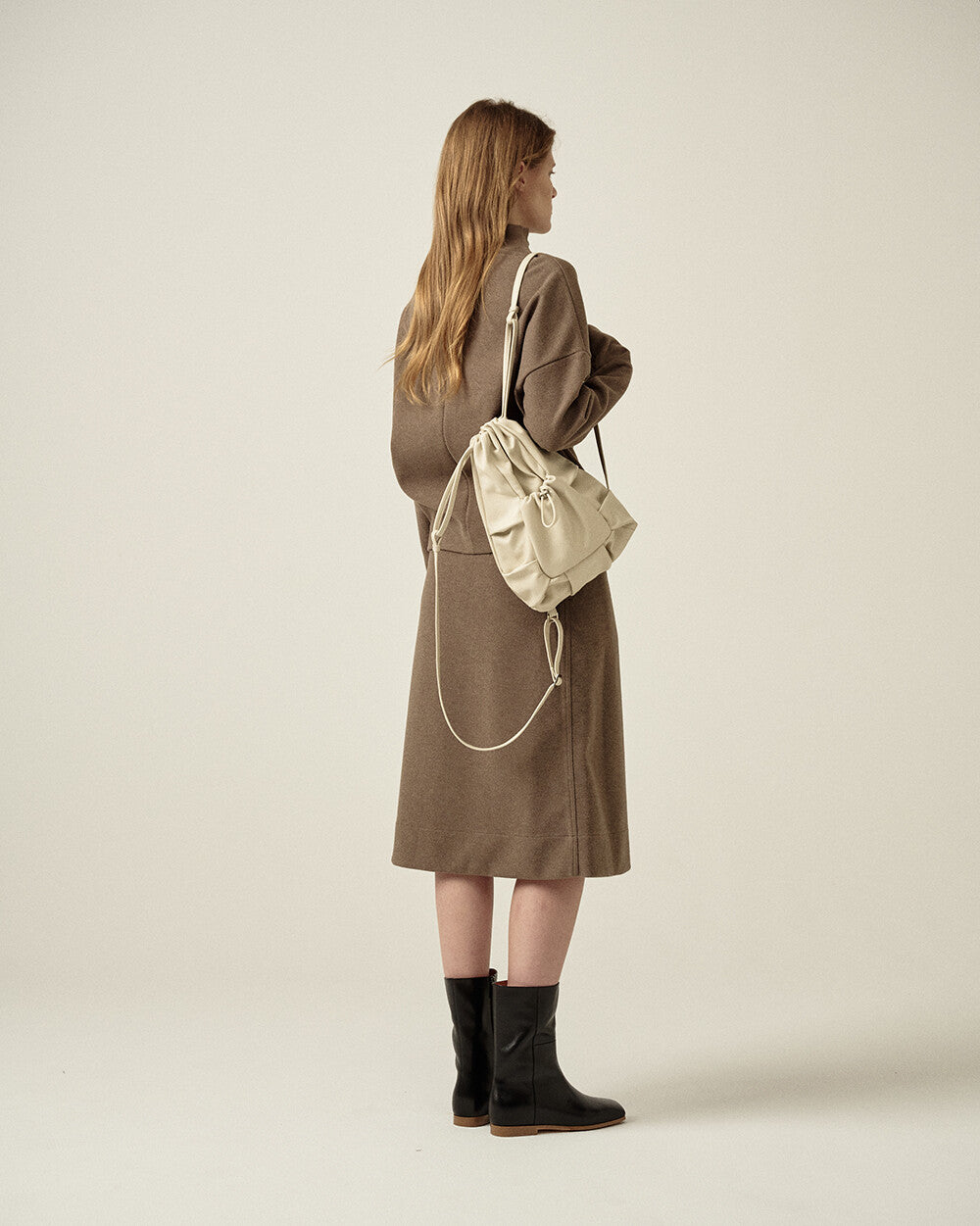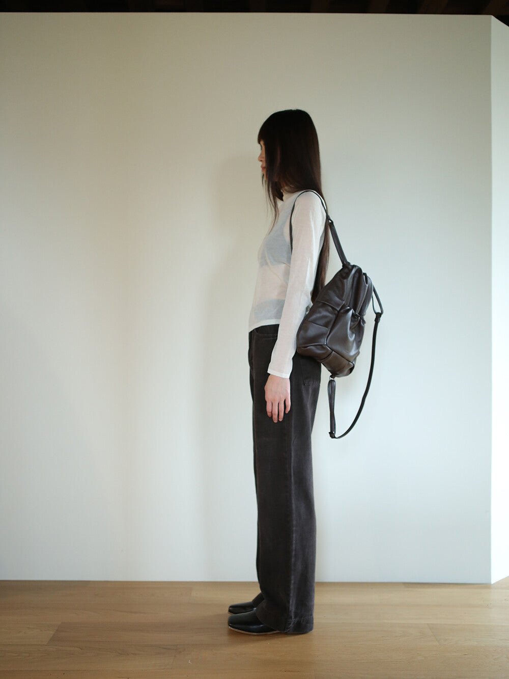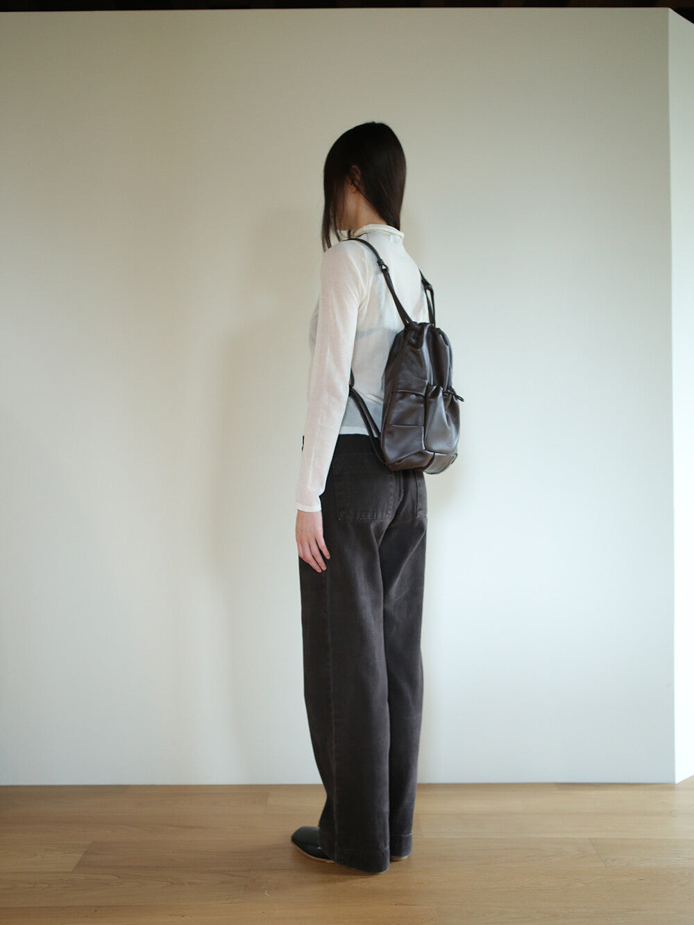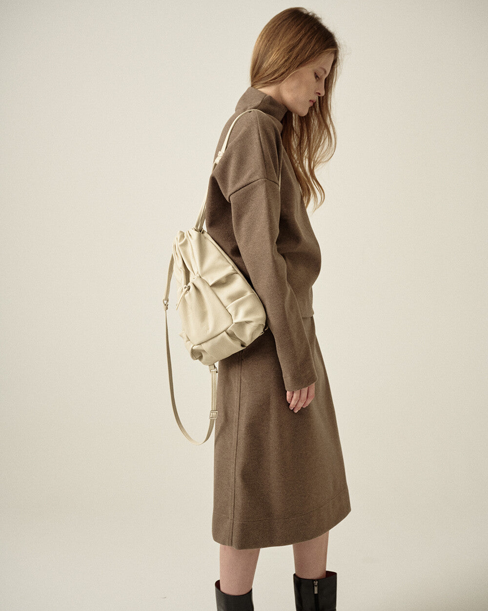 By minimizing excessive details, this backpack highlights the soft volume and fluid silhouette of high-quality leather. The simple yet sophisticated design makes it a versatile accessory that complements any outfit.