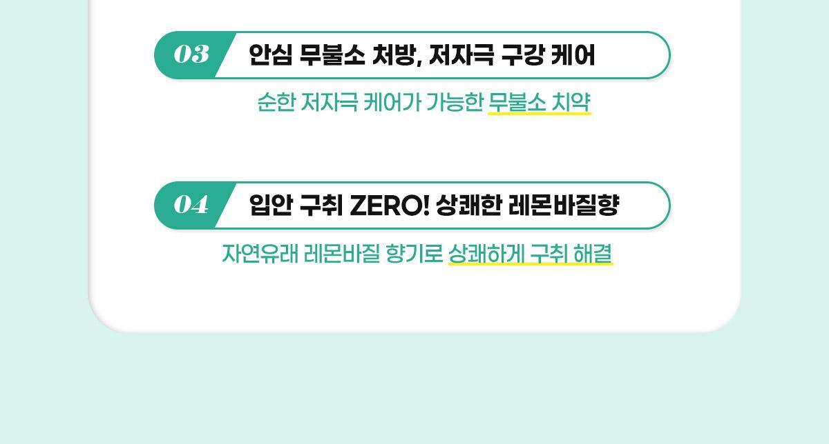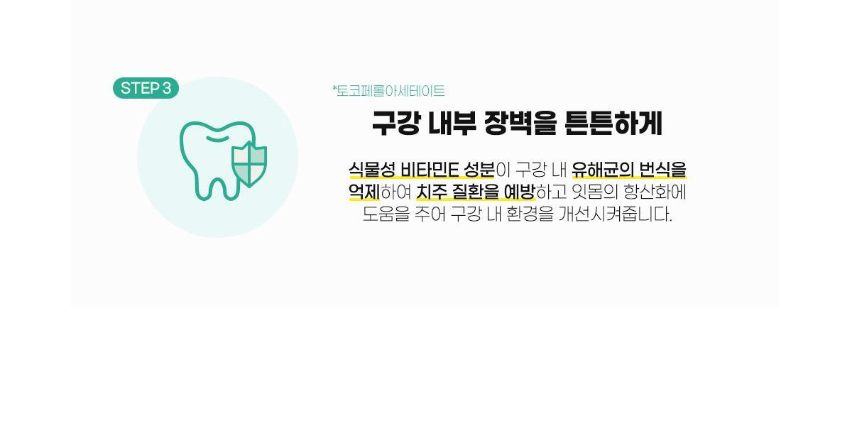 - Inhibits the growth of harmful bacteria, prevents periodontal disease, and enhances the antioxidant effect on gums, improving the overall oral environment.