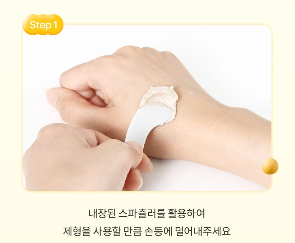 Use the built-in spatula to take an appropriate amount of the product and place it on the back of your hand.