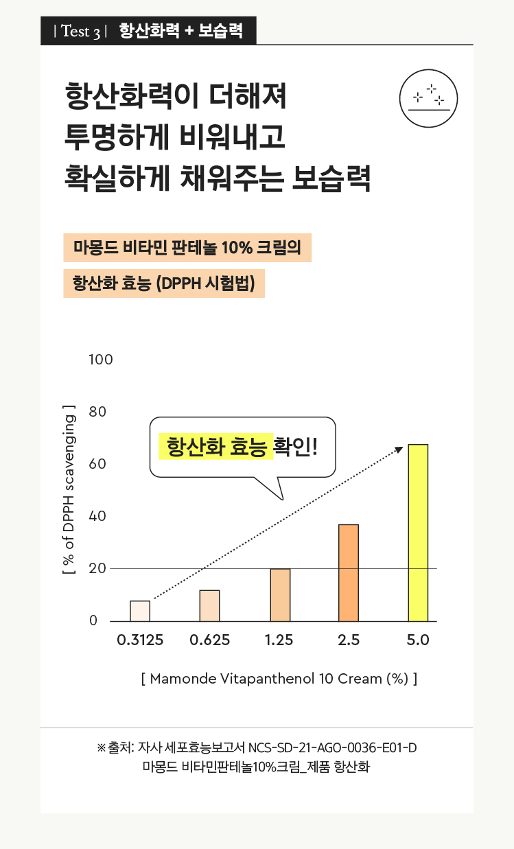 ※Source: Cell Efficacy Report NCS-SD- 21-AGO-0036-E01-D Mamonde Vitamin Panthenol 10% Cream_ Product Antioxidant