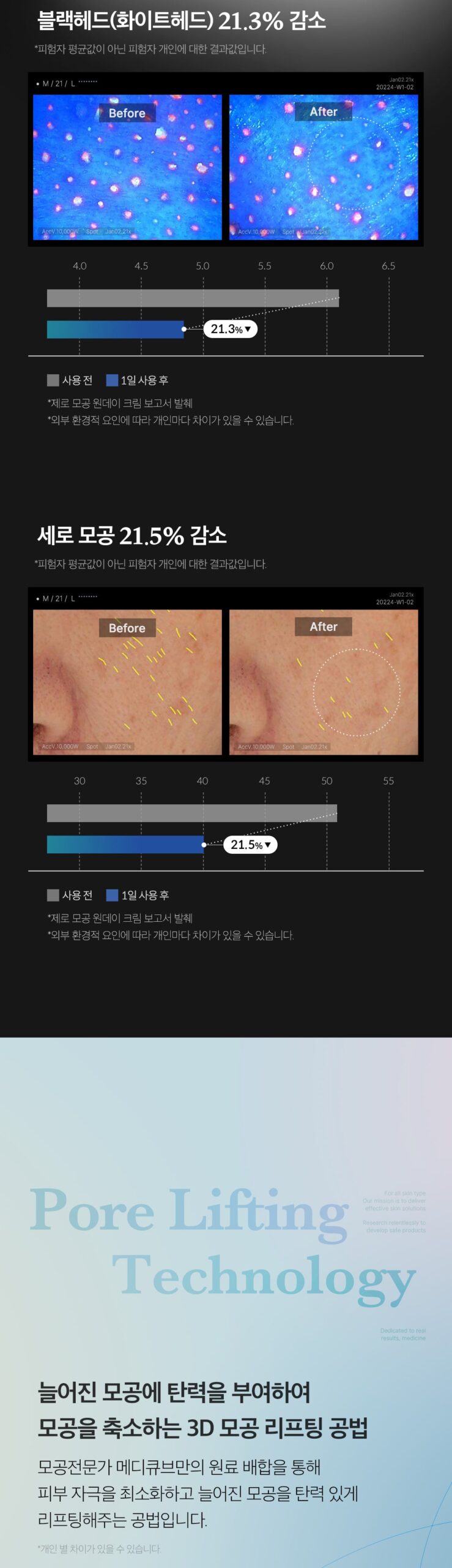 – **3D Pore Lifting**: Our method elastically lifts sagging pores while minimizing skin irritation.