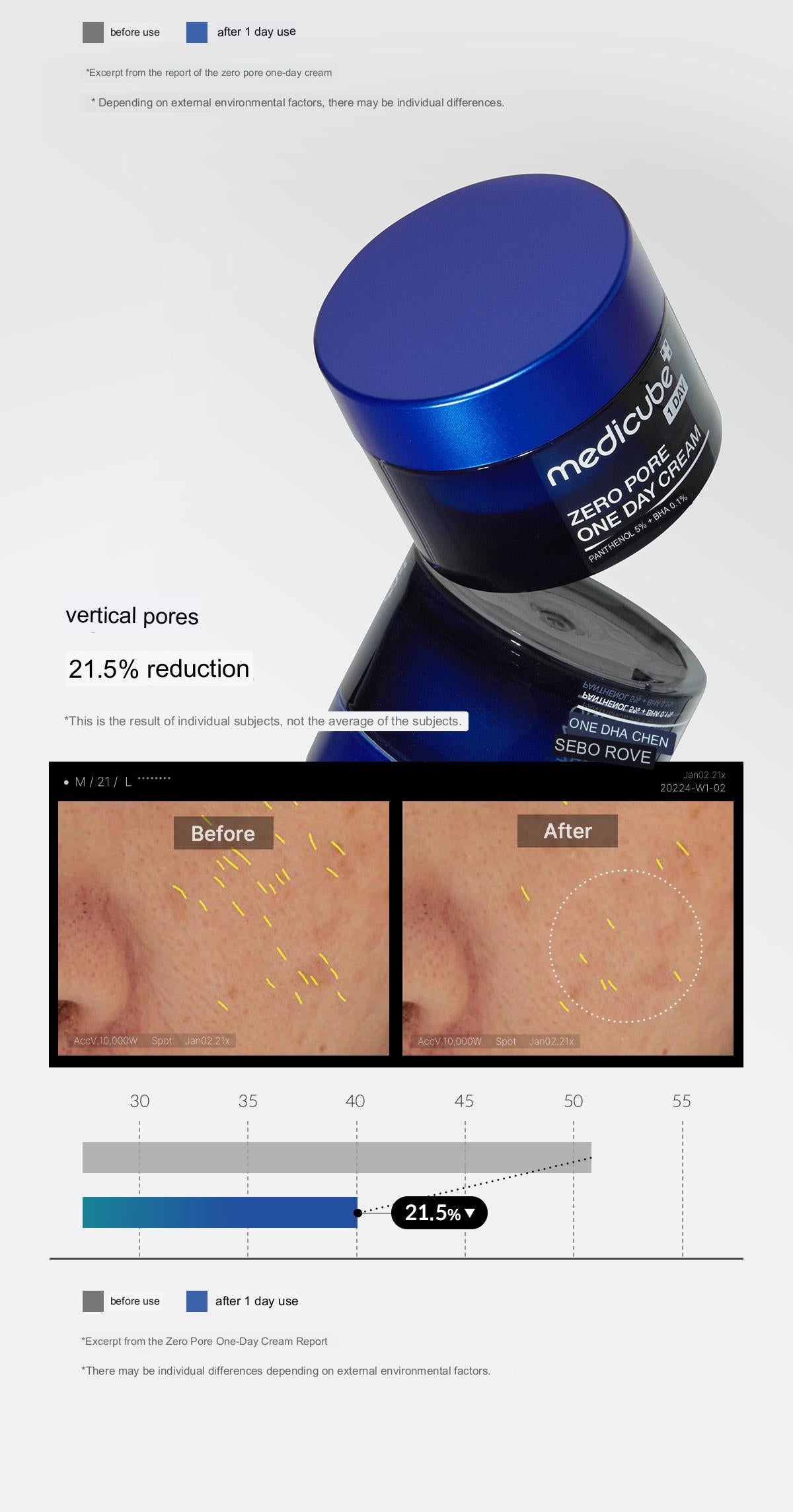 A breakthrough product that lifts sagging pores in just one day. This cream contains the highest amount of pore-specific ingredients that are tailored to give your pores the elasticity they need. Individual results may vary.