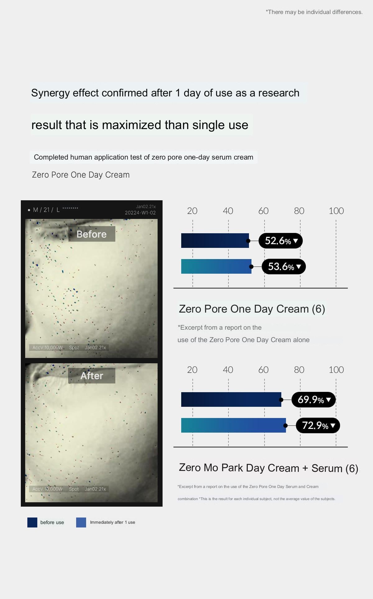 For best results, use the Zero Pore One Day Cream as part of your daily routine along with the Zero Mo Park Day Serum.