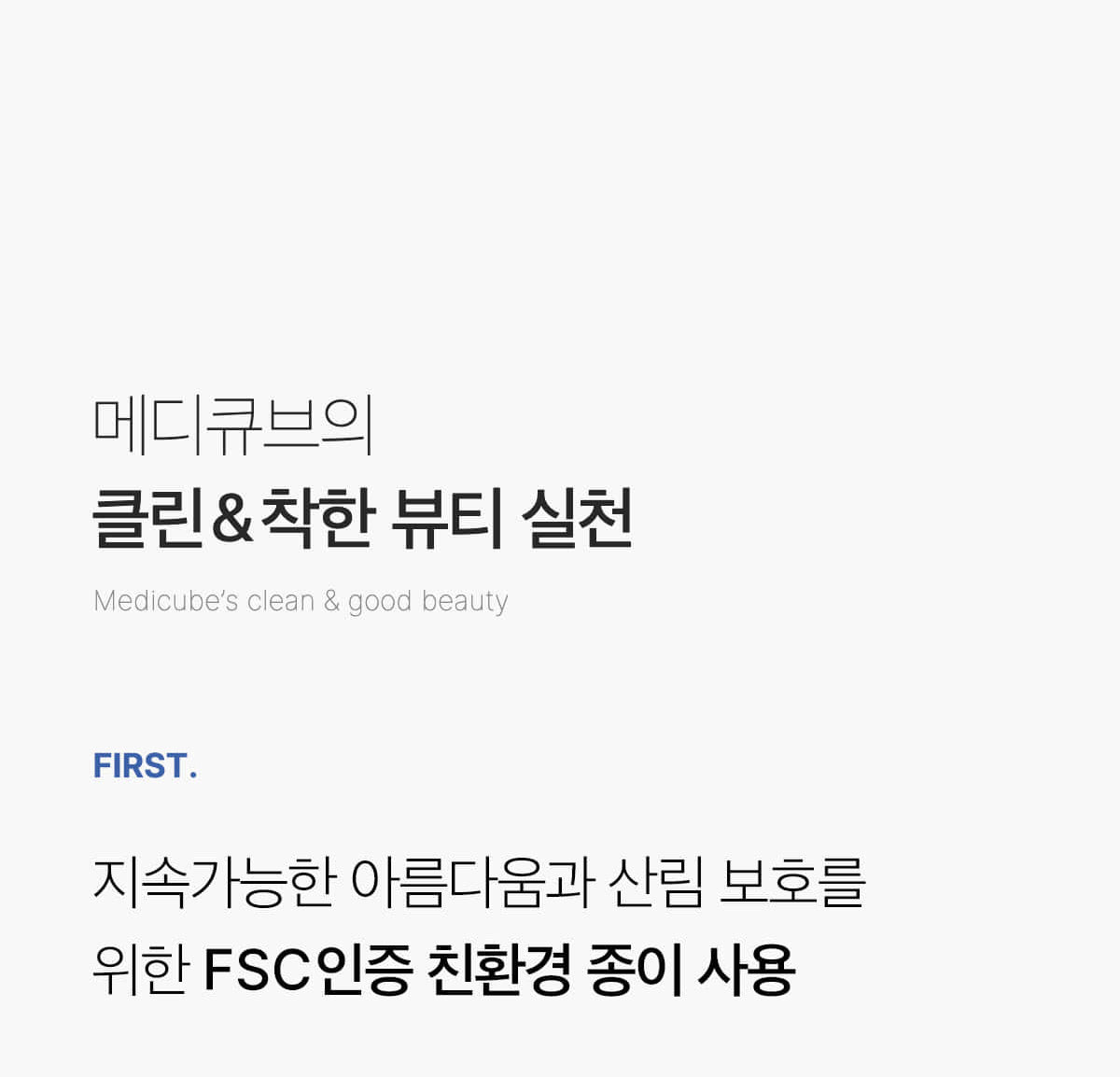 At Medicube, we practice Clean & Good Beauty. We use FSC-certified eco-friendly paper for sustainable beauty and forest protection.