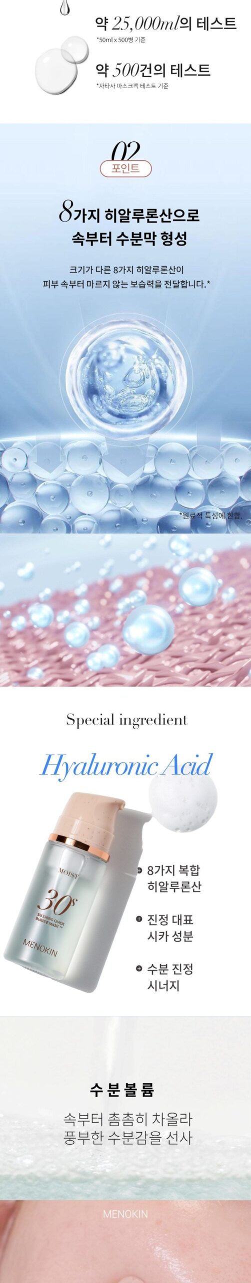 - 8 Types of Hyaluronic Acid: Creates a deep moisture barrier for long-lasting hydration.