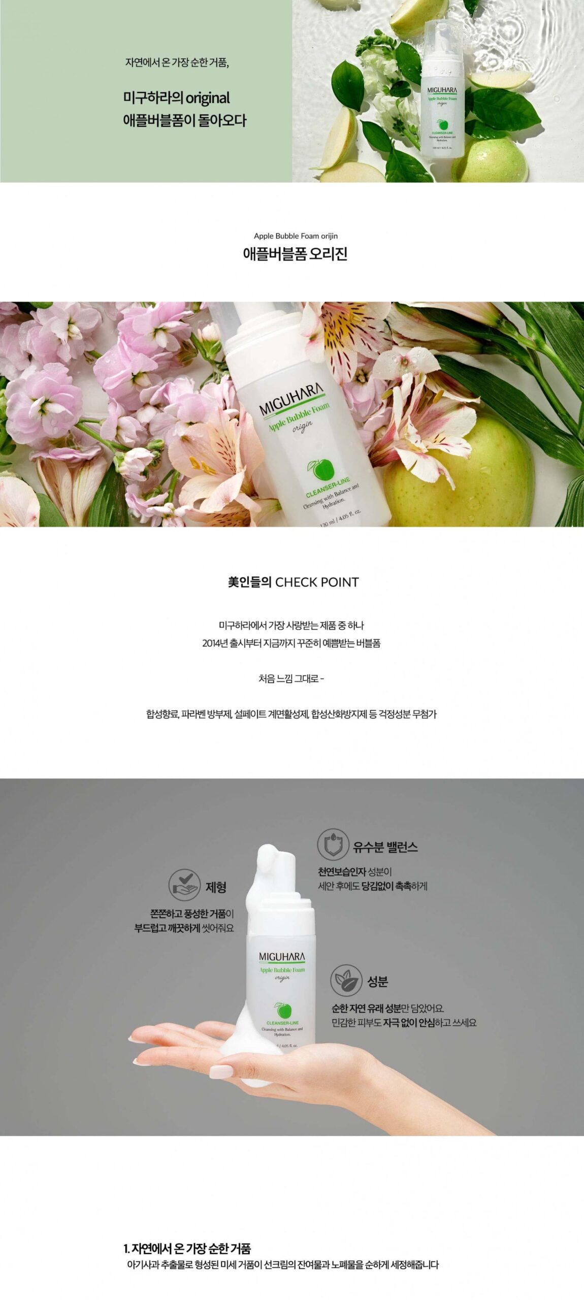 Fine bubbles formed from baby apple extract gently cleanse sunscreen residues and wastes.