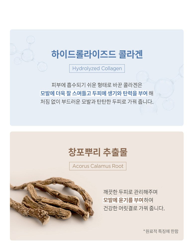 Hydrolyzed collagen deeply penetrates the hair, enhancing elasticity and vitality. It strengthens the scalp while giving your hair a silky, voluminous texture without sagging. - Seaweed Root Extract