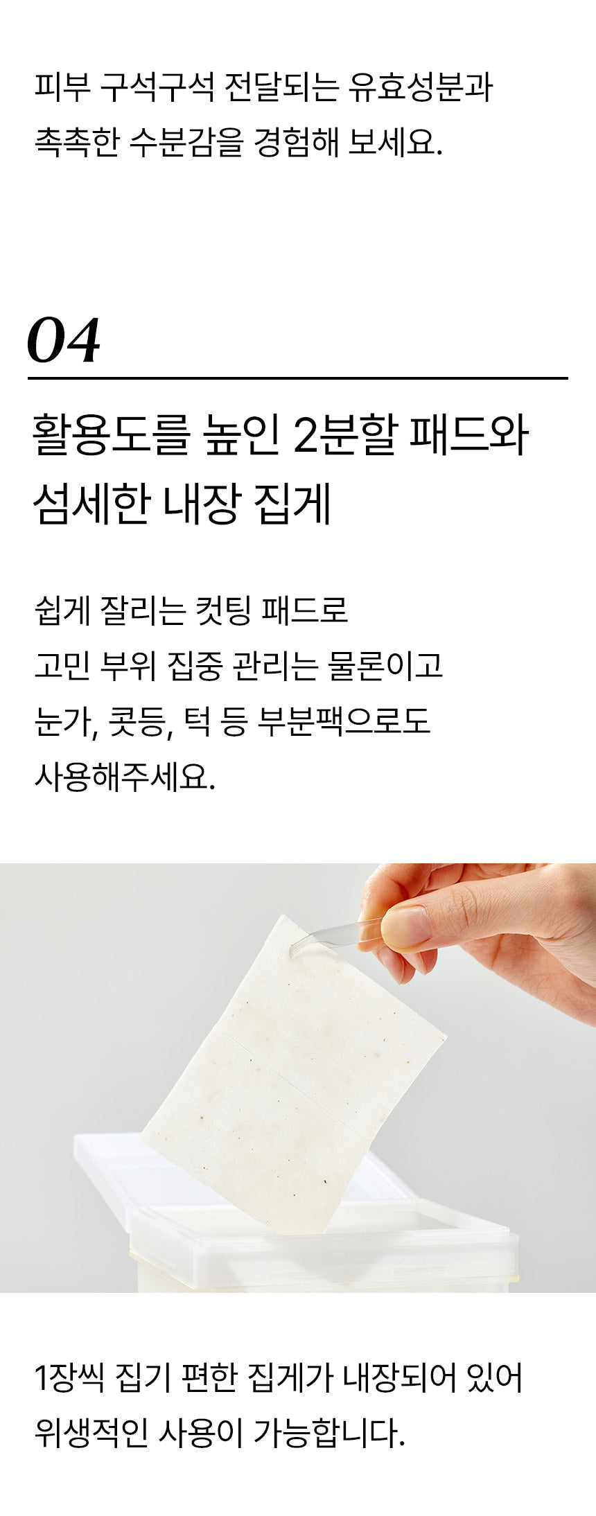 • Mask Pack Toner: Place on dry, sensitive areas for a quick and easy moisture boost.