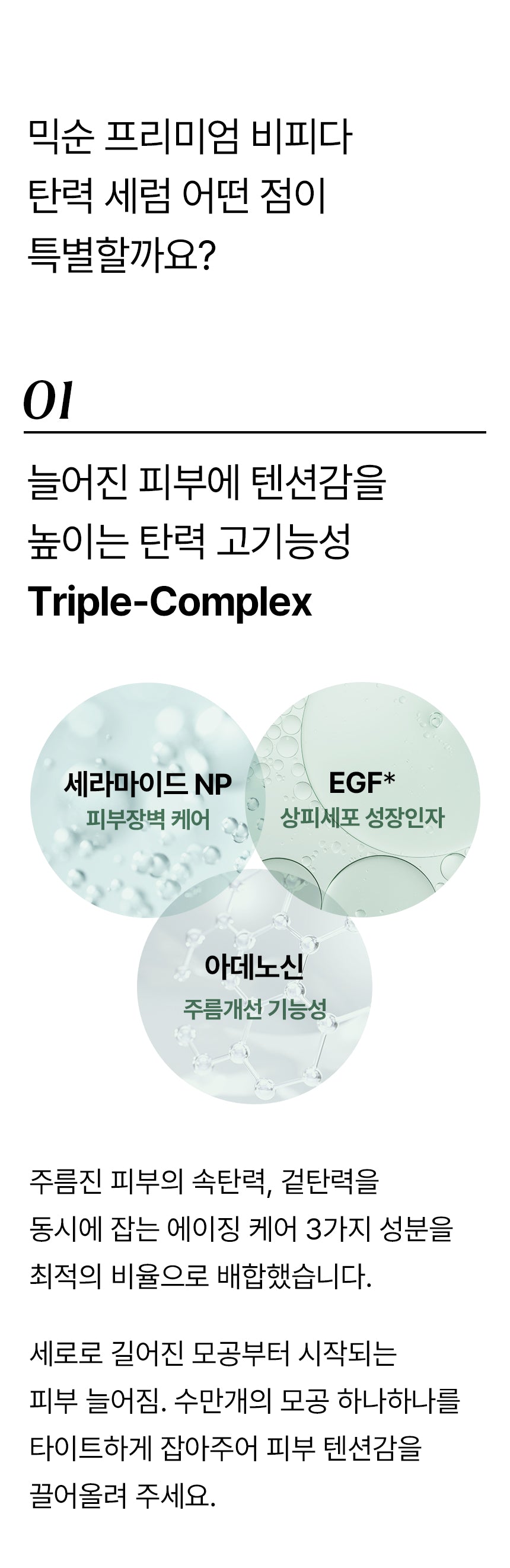 This serum is formulated with a Triple Complex to enhance elasticity and firmness, targeting sagging and wrinkled skin from within. The synergy of these three powerhouse ingredients works at optimal levels to visibly improve skin resilience: