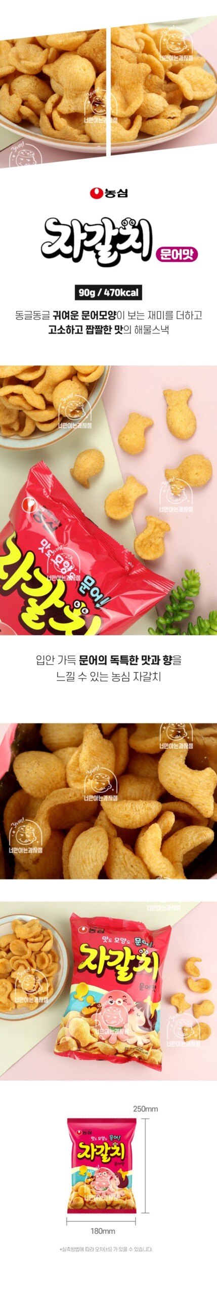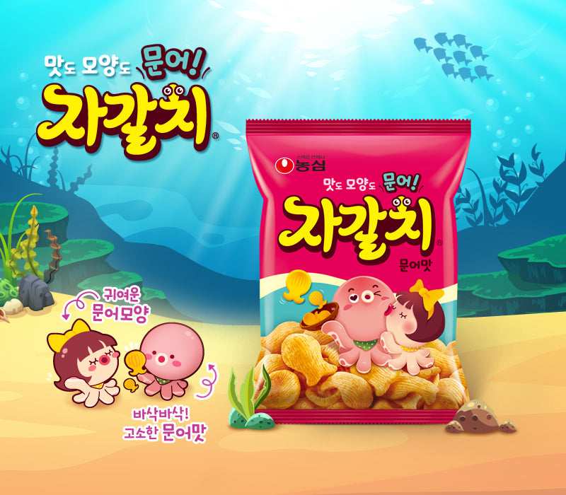 Nongshim Jagalchi is a savory and crispy octopus-flavored snack shaped like adorable little octopuses! With its unique crunch and mildly salty, umami-packed taste, this snack has been a beloved favorite in Korea for years.