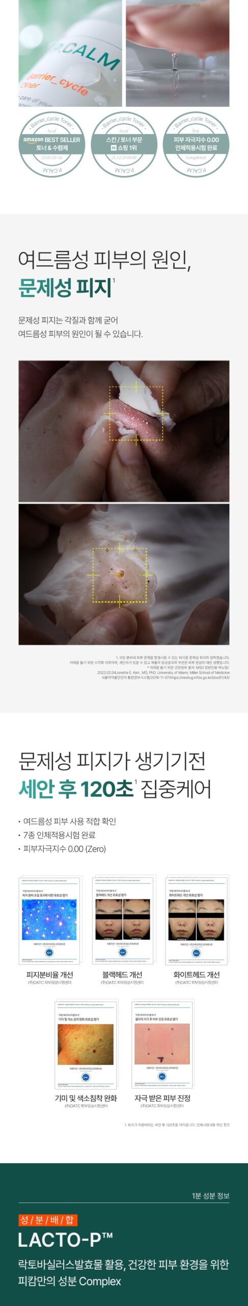 The P.CALM Barrier Cycle Toner has quickly become a favorite, achieving over KRW 1 billion in sales within just 6 months of its launch. It has secured its place as a top seller in the toner and astringent category on Amazon and is the No. 1 toner on Naver Shopping.