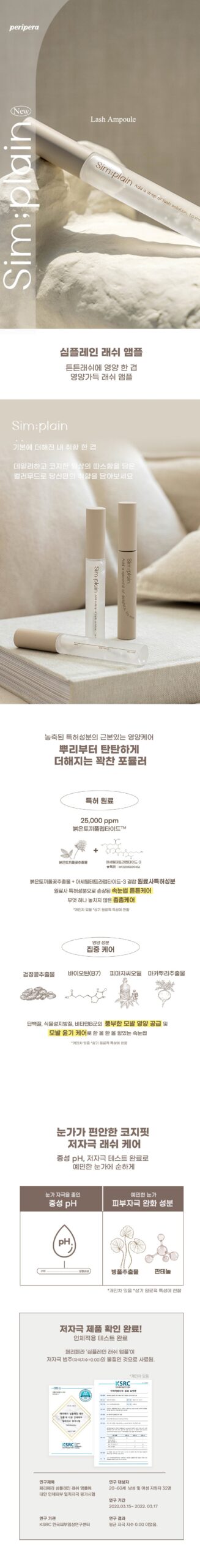 私が長年愛用しているまつげケアの中でも、このperipera Sim;plain Lash Ampouleは特に印象的でした。軽いテクスチャーなのに、必要な栄養素をしっかり供給してくれます。また、敏感肌にも優しいので安心です。朝晩の使用で約4週間経った頃には、自分のまつげがどう変わるかとても楽しみになります。この製品のおかげで自信を持てるようになりました。そして実際に化粧する時も、自然さが際立ち、大好きなアイメイクと相性抜群!