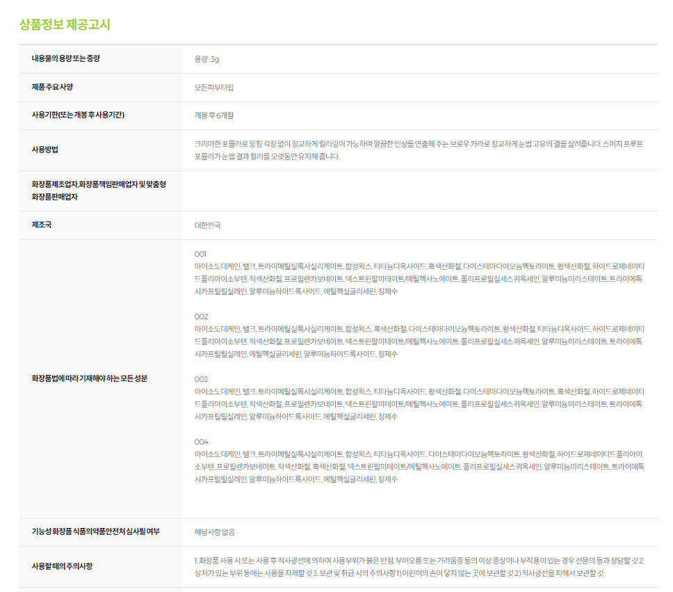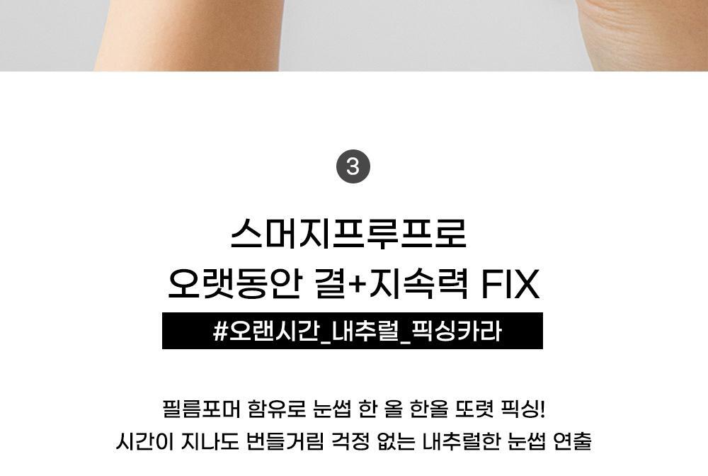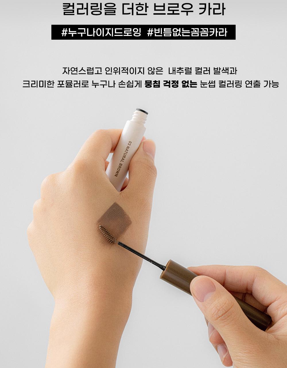 - A formula containing film formers that securely fix each eyebrow hair, preventing shininess over time.