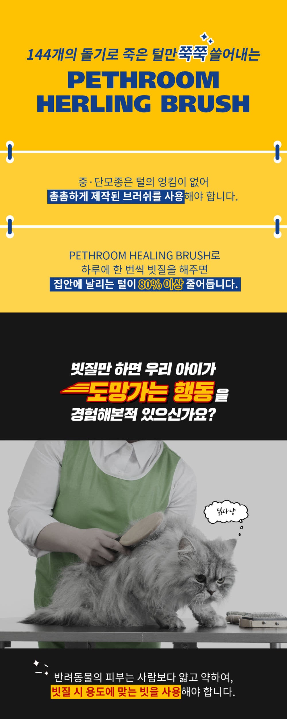 A. Pets have thin skin, so they may experience injuries when using an irritating brush.