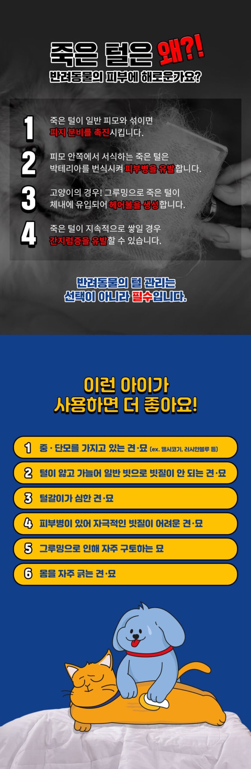 2. Dead hair living inside the coat breeds bacteria and causes skin diseases.