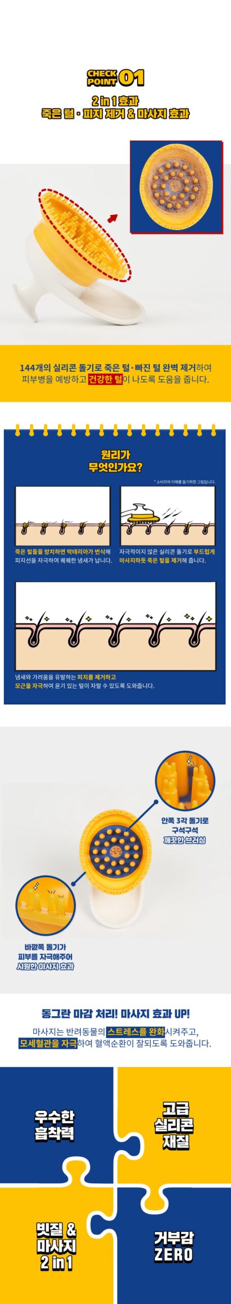 Removes dead hair with a gentle massage using non-irritating silicone protrusions.