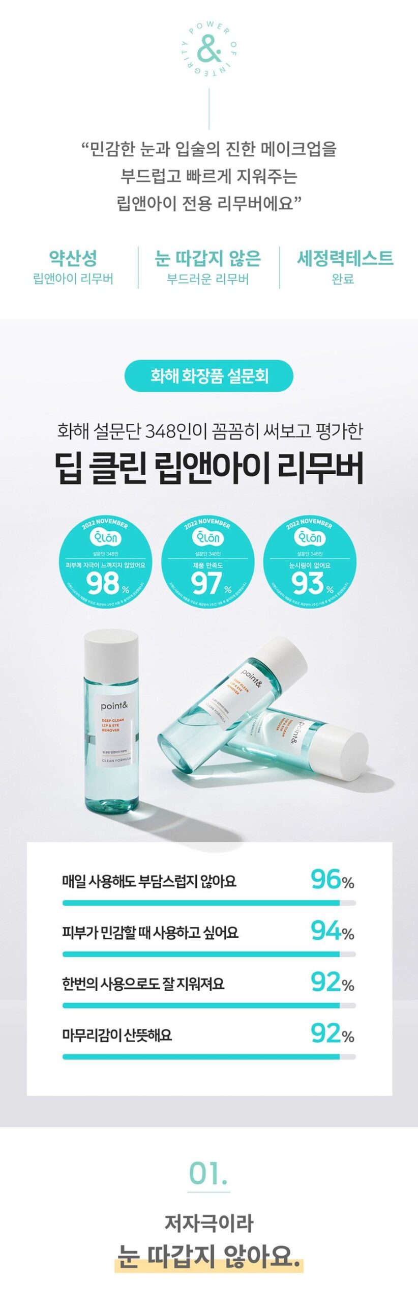 The point& Deep Clean Lip & Eye Remover has been a game-changer for my makeup routine. I was impressed with its vegan formula and the gentle, pH-balanced blend that respects my sensitive skin. It effortlessly removed even waterproof mascara without any irritation around my eyes or lips. The sustainable packaging is an added bonus, reflecting their commitment to both skin care and environmental responsibility. After using it, I felt no residue left on my skin, making it perfect for nightly use before bed.
